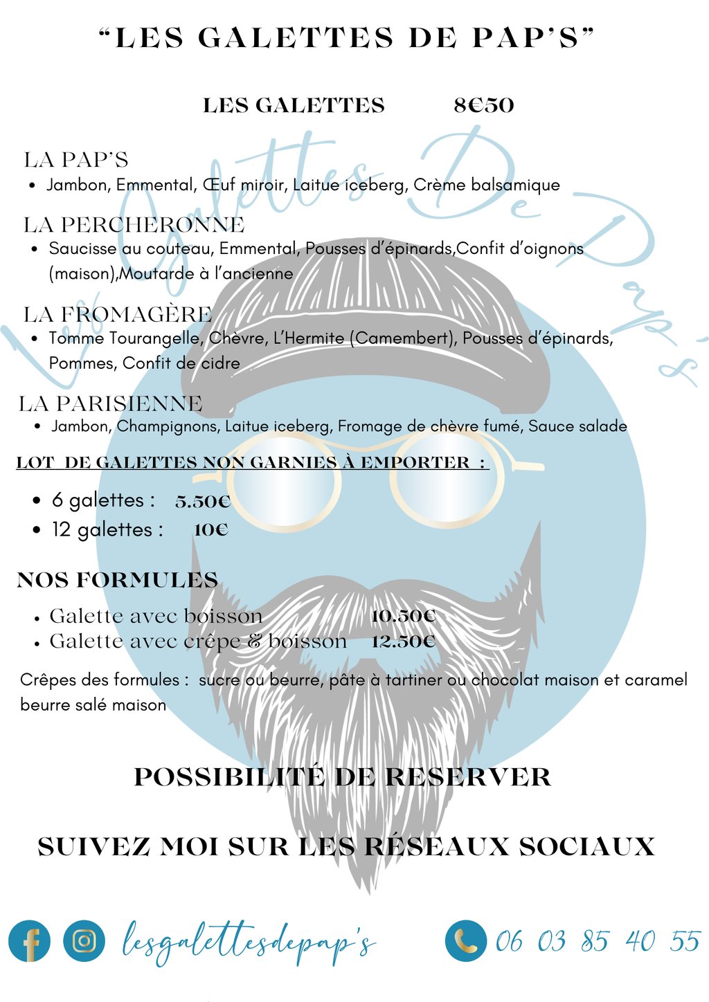 Retrouver Les Galettes de Pap's sur le parking de la Salle Polyvalente.